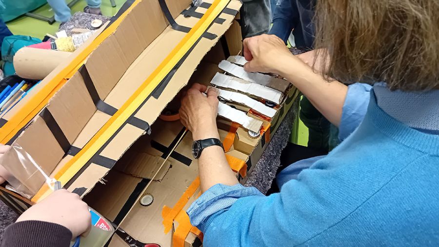 Organisiert von unserer Einrichtung schoolkids entdeckten die Kinder gemeinsam mit den Künstlerinnen von Machwerk e.V. Materialien neu und setzten eigene Ideen um. In den drei Themengruppen Kostüm, Bühne und Musik entstanden fantasievolle Welten aus vermeintlichem Wegwerfmaterial.